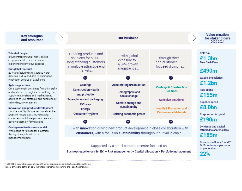 We are a business-to-business speciality chemicals producer. We create value for all our stakeholders by applying our expertise and innovation capabilities to provide high-performance water-based polymers and ingredients to a wide range of blue-chip customers in multiple attractive end markets.