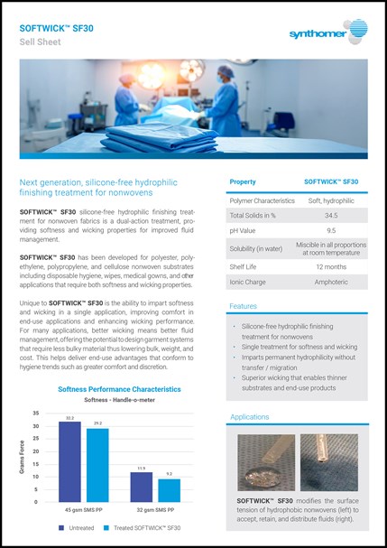 SOFTWICK™ SF30OTHDurable hydrophilic finishing treatment for nonwovens